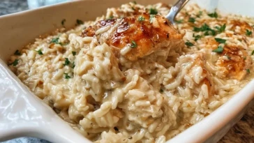Cremiger Reis mit Hähnchen aus dem Ofen