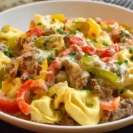 Käse-Tortellini mit Rinderhack und Paprika