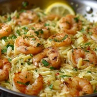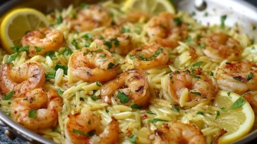 Zitronen-Knoblauch-Garnelen mit Orzo