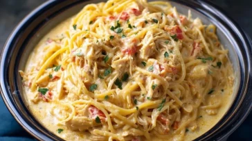 Käse-Hühnchen-Spaghetti aus dem Slow Cooker