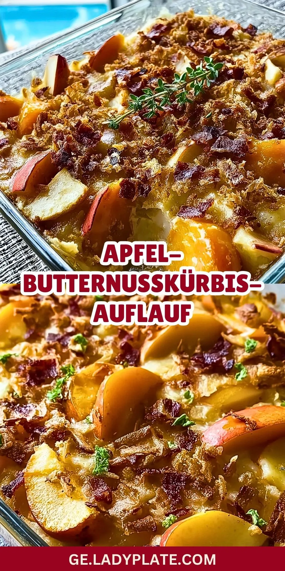 Der Apfel-Butternusskürbis-Auflauf ist ein herrlich herbstliches Gericht, das den süßen Geschmack von Äpfeln mit der samtigen Textur von Butternusskürbis und einer knusprigen Kruste vereint. Diese Kombination bringt fruchtige Frische, zarten Schmelz und herzhafte Aromen perfekt zusammen – ein echtes Wohlfühlessen für gemütliche Abende oder festliche Tafeln. Die dezenten Gewürze und der Hauch von Speck machen dieses Gericht zu einem vielseitigen Begleiter, der sowohl als Hauptgericht als auch als Beilage glänzen kann.