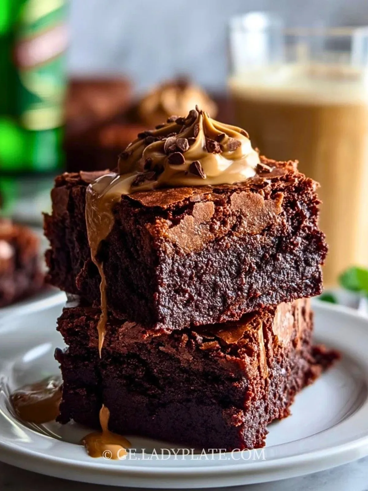 Baileys Irish Cream Brownies schmecken leicht gekühlt besonders gut, weil die Frischkäse-Schicht dann wunderbar cremig bleibt und die Stücke sauber in Form bleiben. Zum Servieren passen ein Klecks geschlagene Sahne, etwas Schokoladensauce oder ein paar Schokoraspel. Für Gäste wirken sie besonders hübsch, wenn du sie in kleinere, elegante Quadrate schneidest.