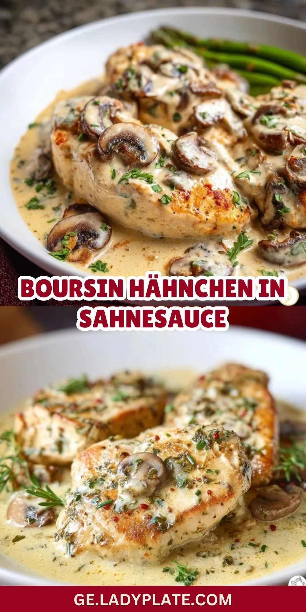 Dieses Boursin Hähnchen in Sahnesauce ist cremig, aromatisch und wunderbar einfach zuzubereiten. Zarte Hähnchenbrustfilets treffen auf eine Sauce aus Boursin-Käse, Champignons und frischen Kräutern. Perfekt für ein schnelles Familienessen oder ein gemütliches Dinner zu zweit.