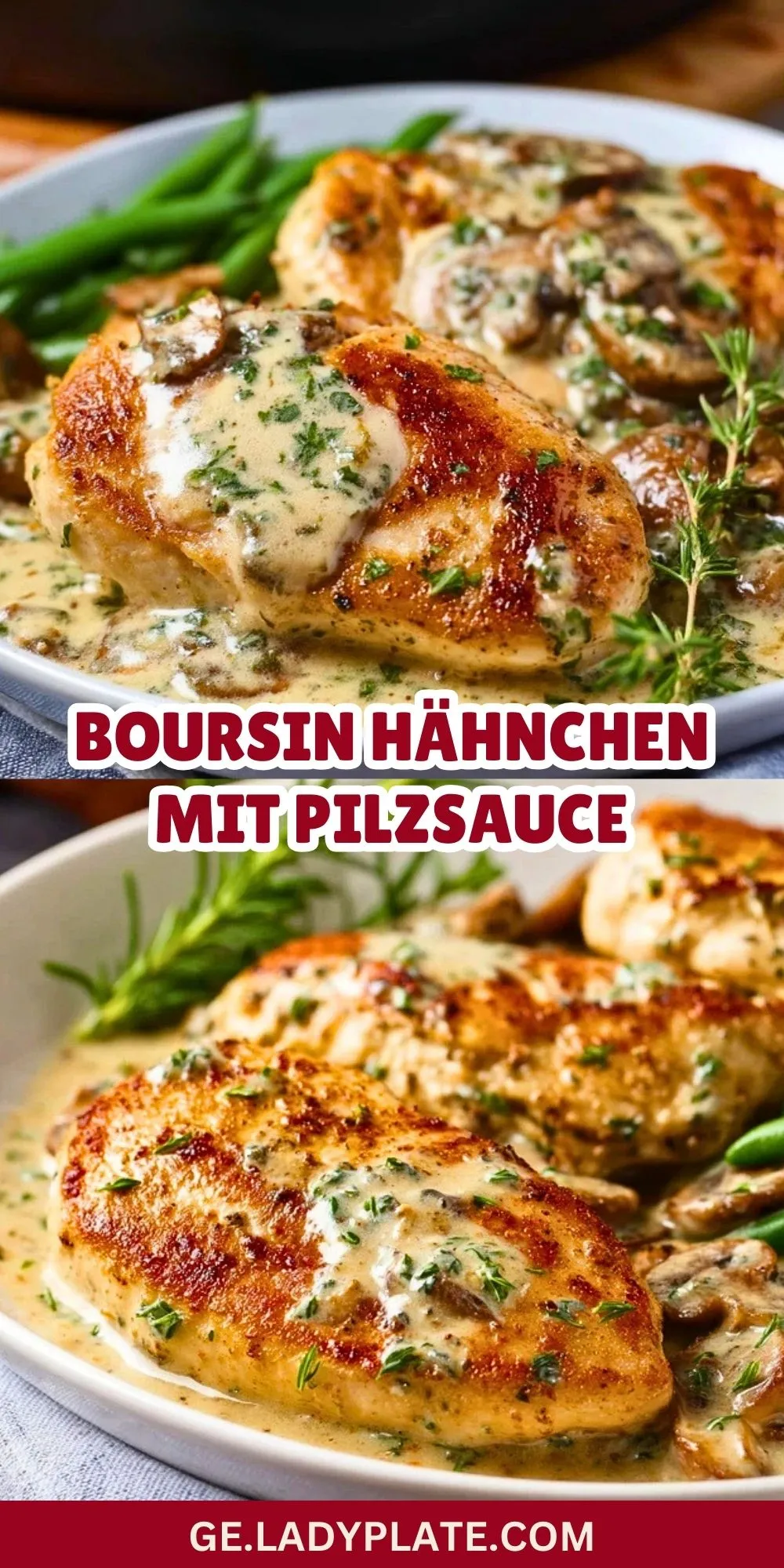 Zart gebratene Hähnchenbrustfilets in einer cremigen Sauce aus Boursin-Kräuterfrischkäse, frischen Champignons und feinen Kräutern – ein Fest für alle Liebhaber der französischen Küche. Perfekt für Gäste oder das gemütliche Familienessen.