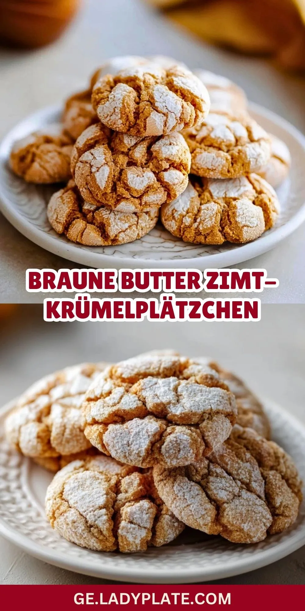 Diese Braune Butter Zimt-Krümelplätzchen sind das perfekte Gebäck für alle, die knusprige Ränder, ein zartes Inneres und aromatische Würze lieben. Durch die Verwendung von brauner Butter erhalten die Plätzchen eine herrlich nussige Tiefe, die wunderbar mit der warmen Zimtnote harmoniert. Das charakteristische Krümel- und Crinkle-Muster entsteht durch das Wälzen der Kugeln in Puderzucker vor dem Backen.