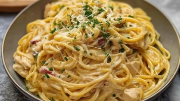 Cremige Hähnchen-Spaghetti aus dem Slow Cooker