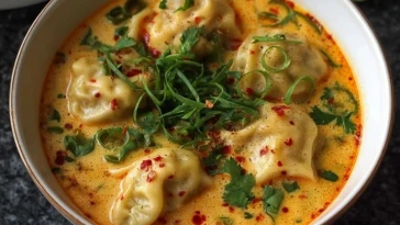Thailändische Kokosnuss-Curry-Suppe mit Teigtaschen