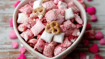 Valentinstag Erdbeer Cheesecake Puppy Chow