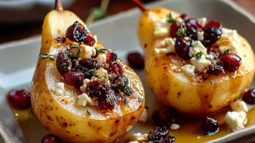 Gebackene Birnen mit Feta, Honig und Cranberries