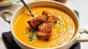 Würzige Kürbissuppe mit Gegrillten Käsecroutons