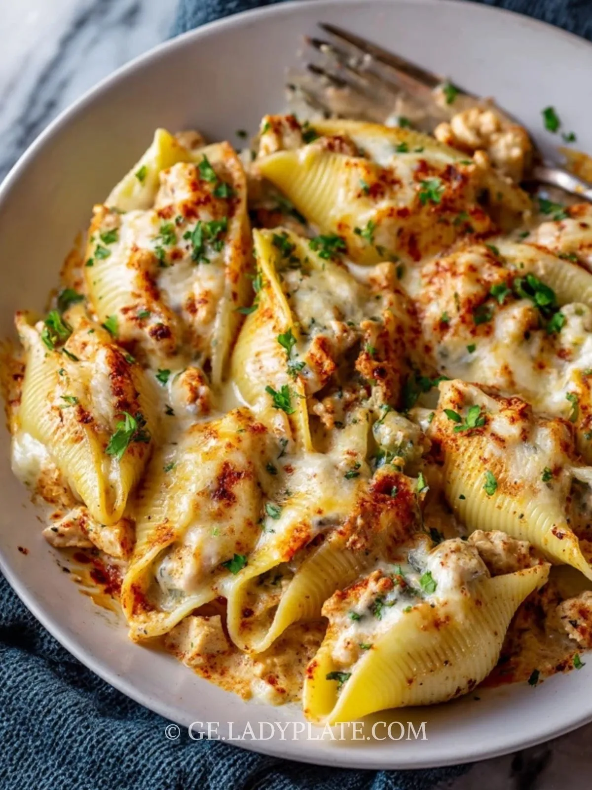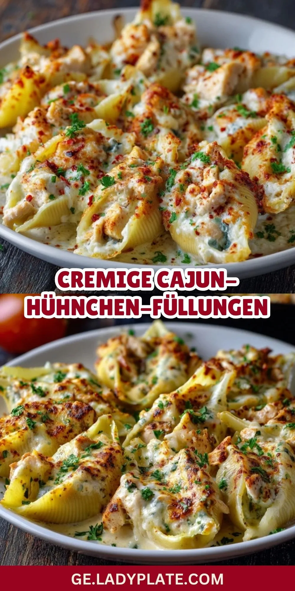 Cremige Cajun-Hühnchen-Pasta-Muscheln sind ein raffiniertes Ofengericht, das zartes Hähnchen, würzige Cajun-Gewürze und cremigen Käse in großen Muschelnudeln vereint. Perfekt zum Vorbereiten, Teilen und Genießen mit Familie oder Gästen!