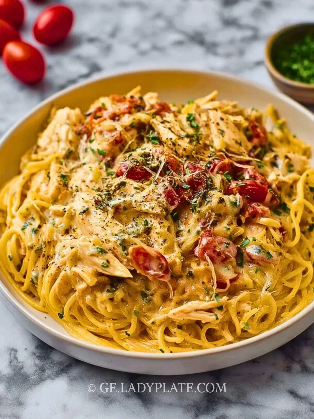 Cremige Hähnchen-Spaghetti aus dem Slow Cooker sind das perfekte Wohlfühlessen für entspannte Abende. Zartes Hähnchenfilet gart langsam in einer aromatischen Sahnesauce, während sich die Spaghetti mit dem Geschmack von Knoblauch, Kräutern und würzigem Parmesan verbinden. Dieses Gericht überzeugt durch seine einfache Zubereitung und begeistert die ganze Familie – ideal, wenn du wenig Zeit hast, aber trotzdem etwas Besonderes servieren möchtest.