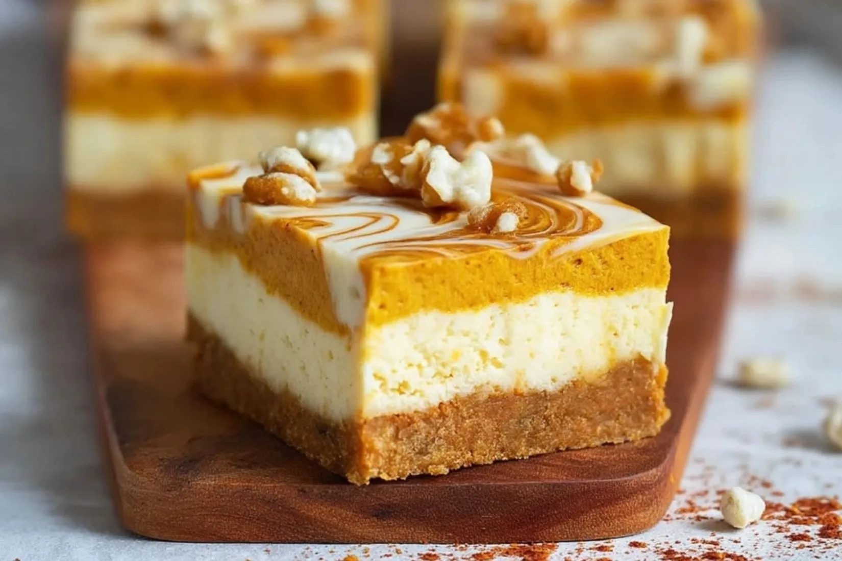 Hausgemachte No-Bake Kürbis-Cheesecake-Riegel