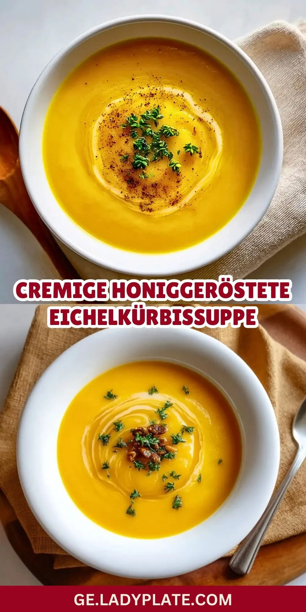 So bereitest du Cremige Honiggeröstete Eichelkürbissuppe zu