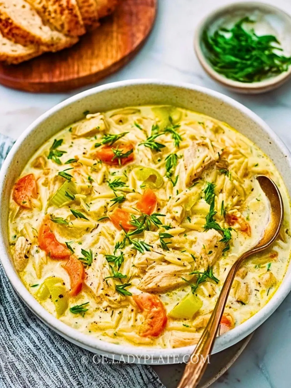 So bereitest du cremige Hühnersuppe mit Orzo zu