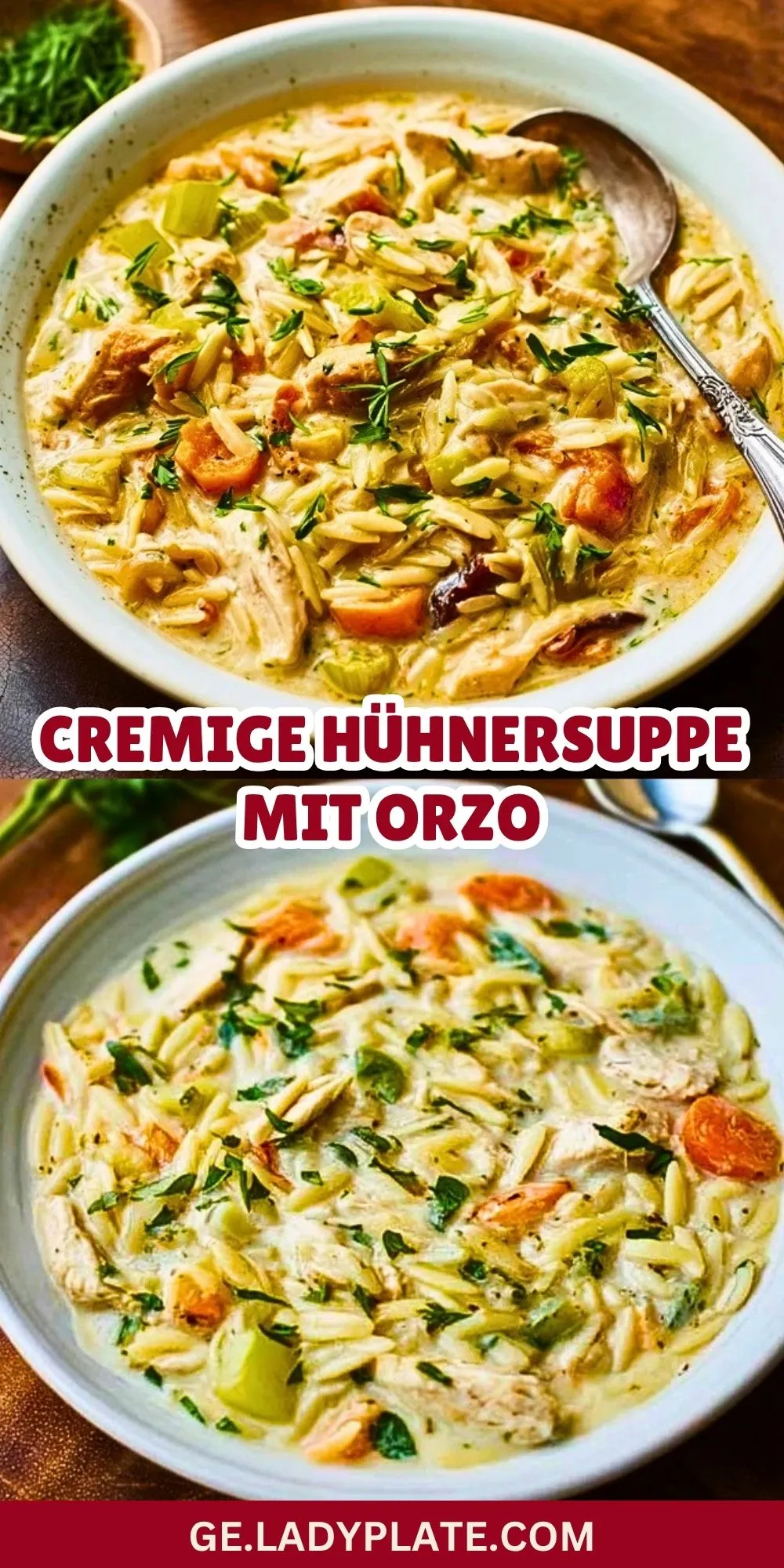 Keywords: cremige Hühnersuppe mit Orzo, Hühnersuppe, Orzo Suppe, cremige Suppe, Wohlfühlgericht