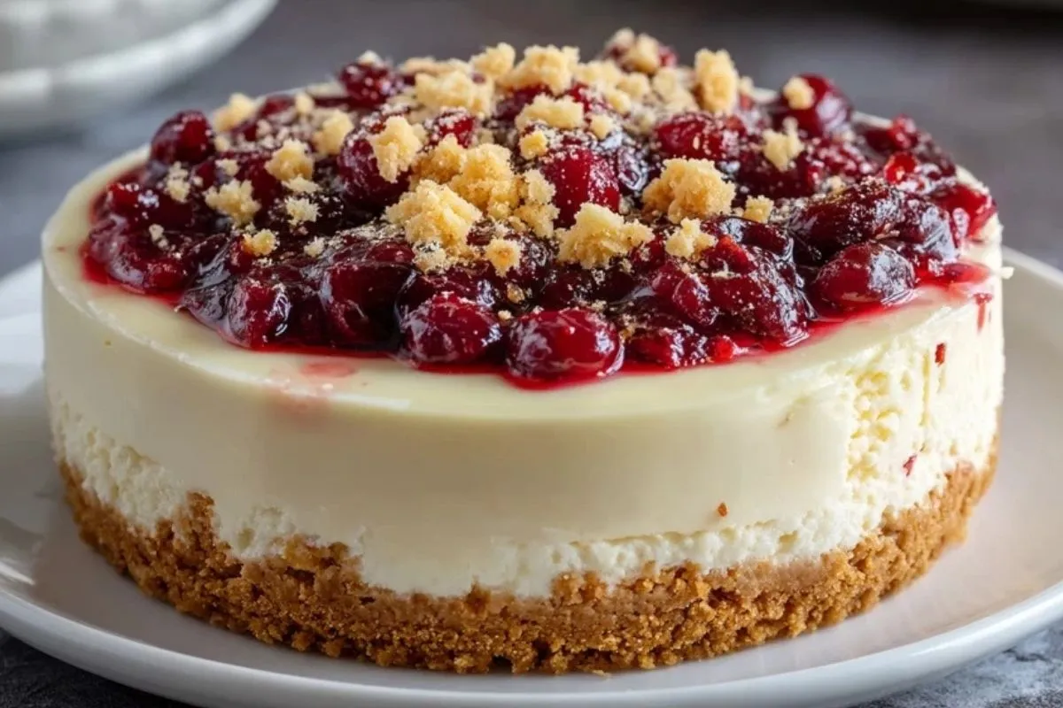 Käsekuchen mit Cranberries und weißer Schokolade