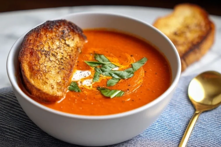 Mit geröstetem Brot oder Käsetoast wird die Tomatensuppe besonders lecker und sättigend.