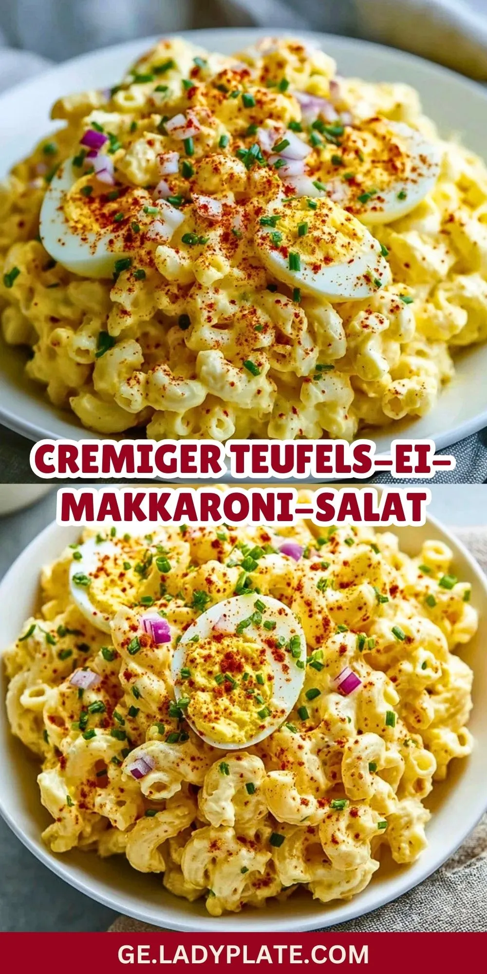 Dieser Cremiger Teufels-Ei-Makkaroni-Salat vereint das Beste aus zwei Welten: cremiger Nudelsalat und würzige Teufelseier! Die Kombination aus zarten Makkaroni, saftigen Eiern, knackigen Zwiebeln und einem würzigen, samtigen Dressing macht diesen Salat zum absoluten Hit auf jedem Buffet oder Grillfest. Die pikante Note vom Paprikapulver rundet das Geschmackserlebnis perfekt ab und macht ihn zu etwas ganz Besonderem.