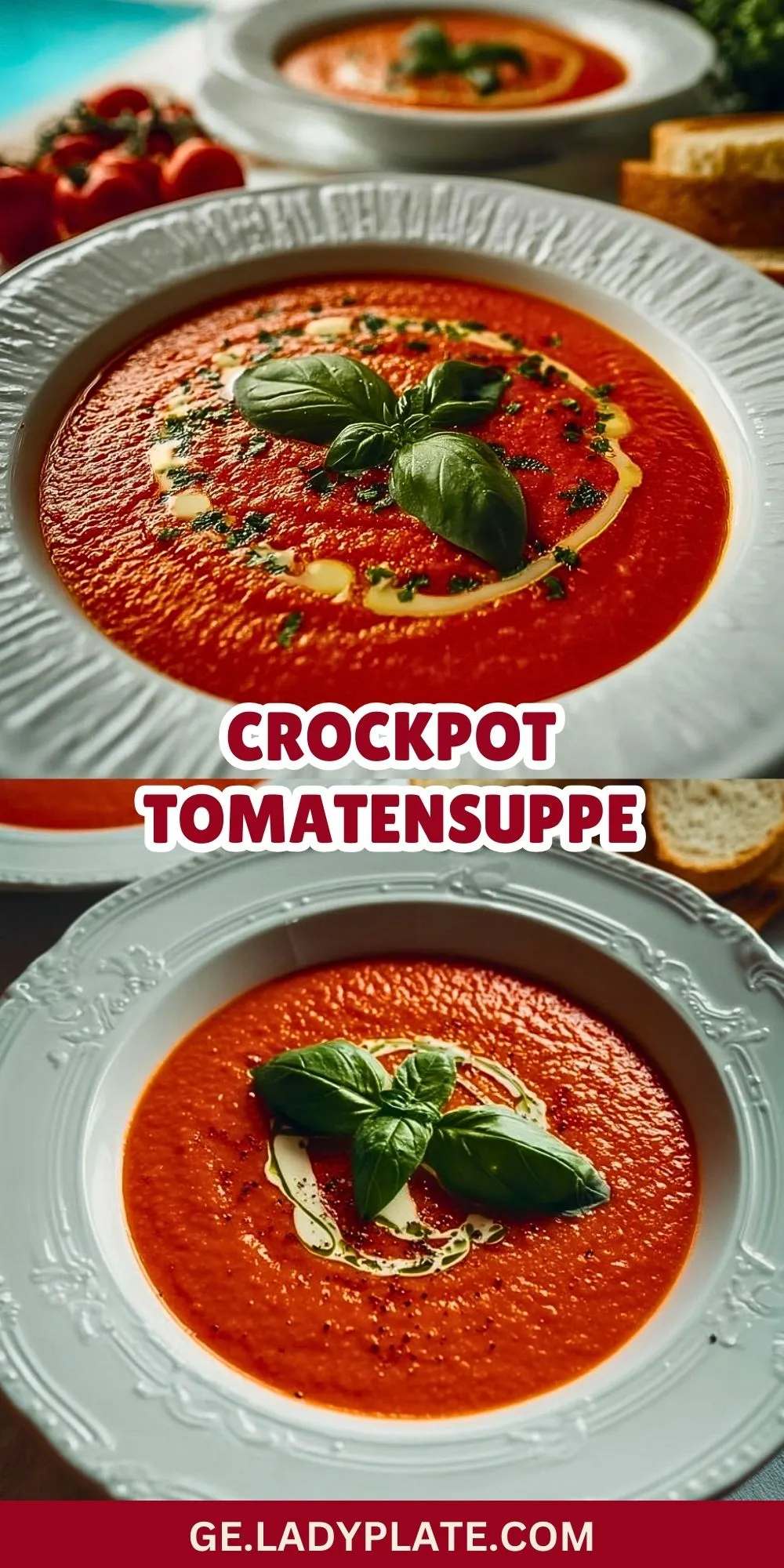Ob als Vorspeise oder Hauptgericht – diese Tomatensuppe lässt sich vielseitig servieren. Mit knusprigem Brot und einem Klecks Crème fraîche oder veganem Ersatz ist sie besonders sättigend. Ein echter Klassiker, der durch den Crockpot einen modernen Twist bekommt und immer wieder Lust auf Nachschlag macht!