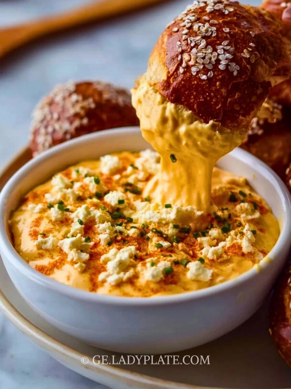 6. Sofort heiß mit Brezeln, Nachos oder Gemüsesticks servieren.