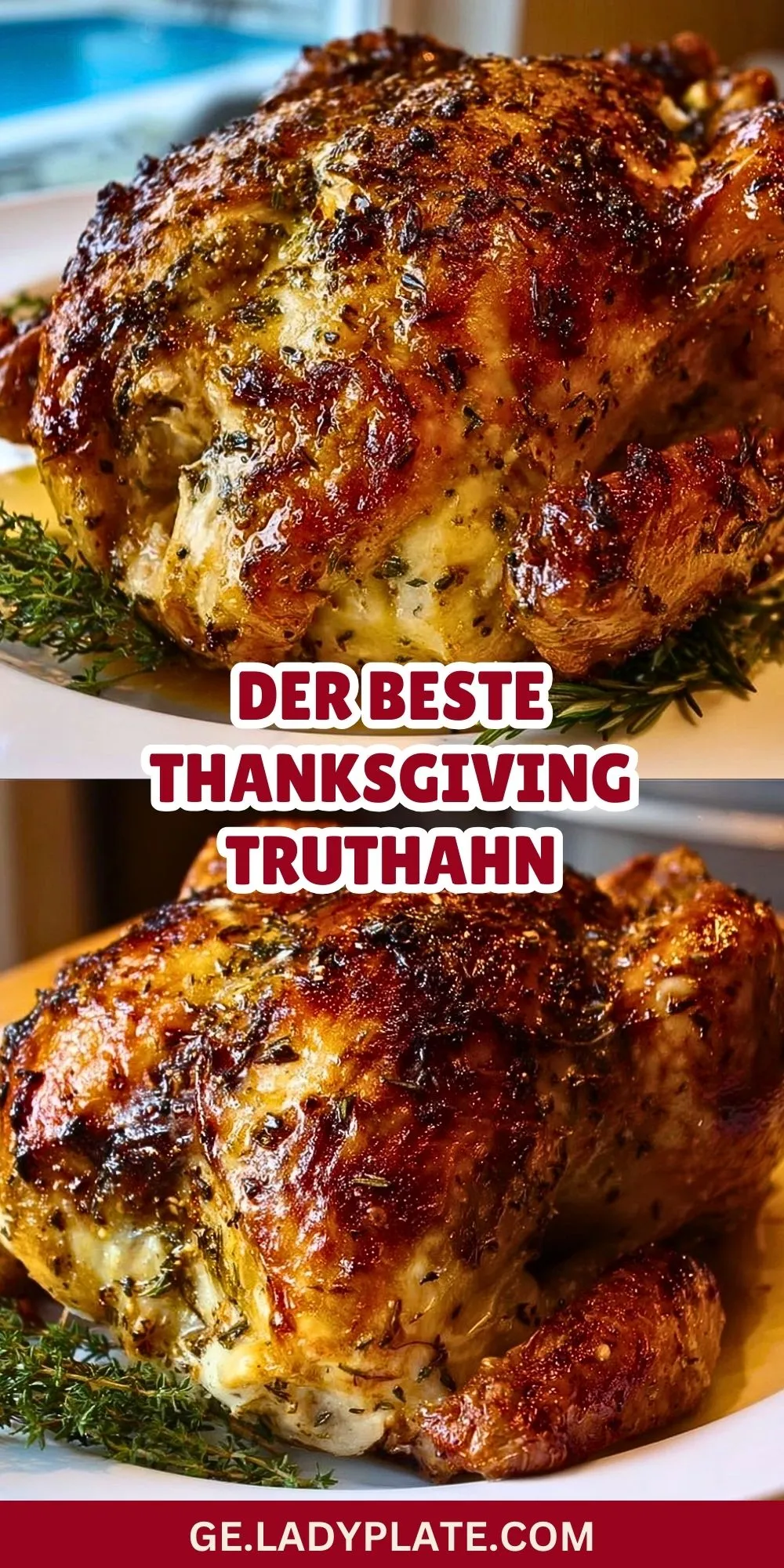 Ein wunderbar saftiger, aromatischer Truthahn – außen knusprig, innen zart – ist das Highlight jedes Thanksgiving- oder Festtagsessens. Die Mischung aus frischen Kräutern, Butter, Zitrone und Knoblauch verleiht diesem Braten ein besonderes Aroma und sorgt dafür, dass er nicht austrocknet. Perfekt für die ganze Familie!