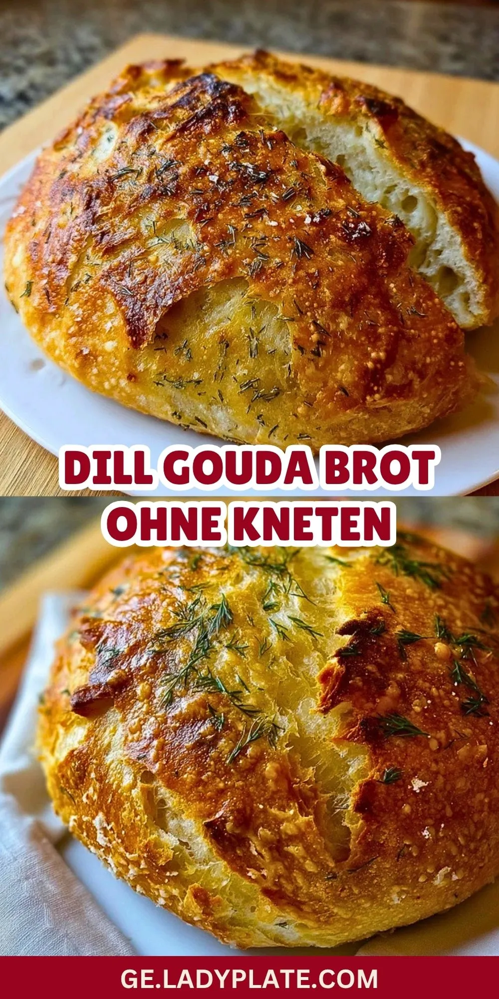 Ein aromatisches, rustikales Brot mit goldener Kruste, geschmolzenem Gouda und feiner Dillnote. Dieses Brot kommt ganz ohne Kneten aus, ist angenehm unkompliziert in der Zubereitung und liefert trotzdem eine lockere Krume mit herzhaftem Geschmack. Perfekt für Frühstück, Brotzeit, Suppen oder als würzige Beilage zum Abendessen.