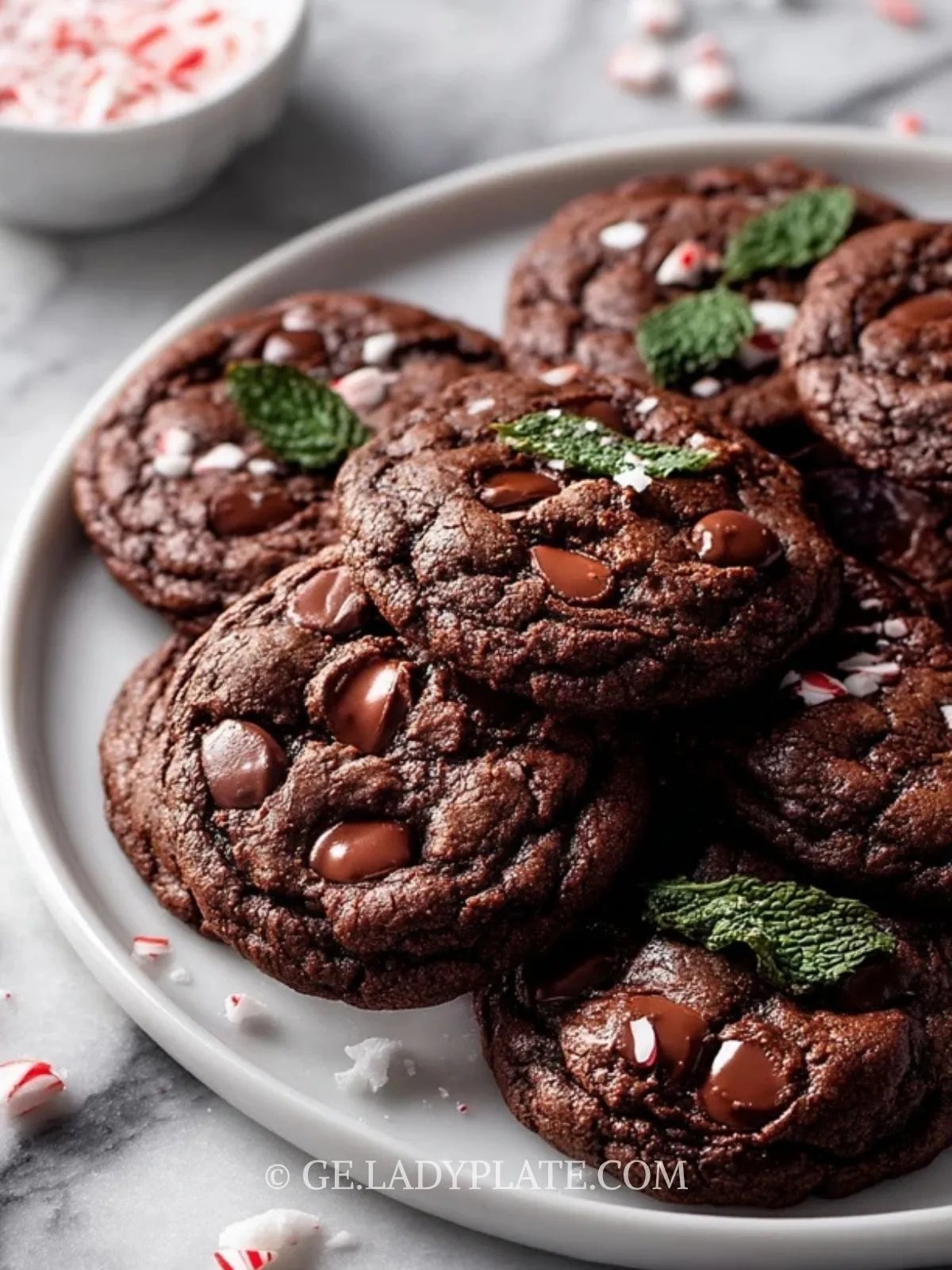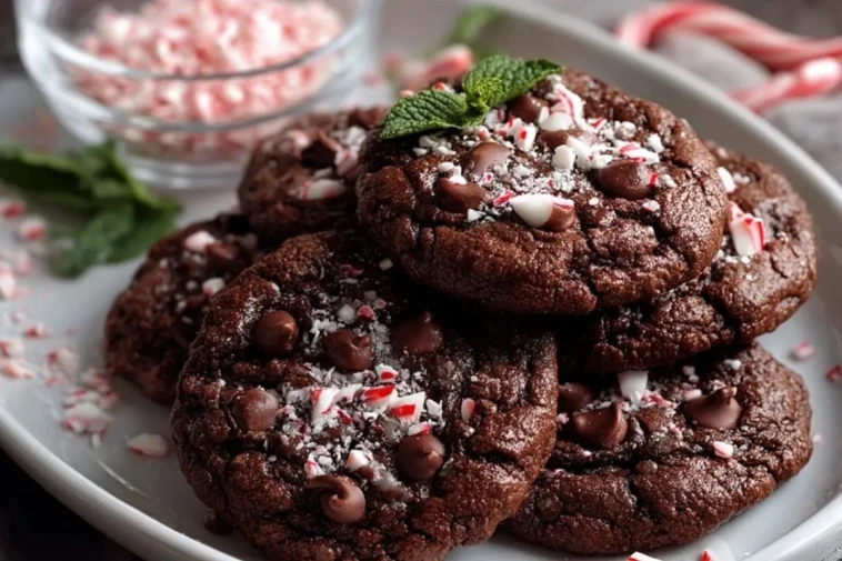 Doppelte Schokoladen-Pfefferminz-Kekse sind genau das Richtige, wenn du ein intensives Schokoladenaroma mit einer frischen, festlichen Note verbinden möchtest. Der Teig ist dunkel, weich und reichhaltig, während zerkleinerte Pfefferminz-Bonbons und zusätzliche Schokostückchen für Kontrast, Biss und ein besonders hübsches Finish sorgen.