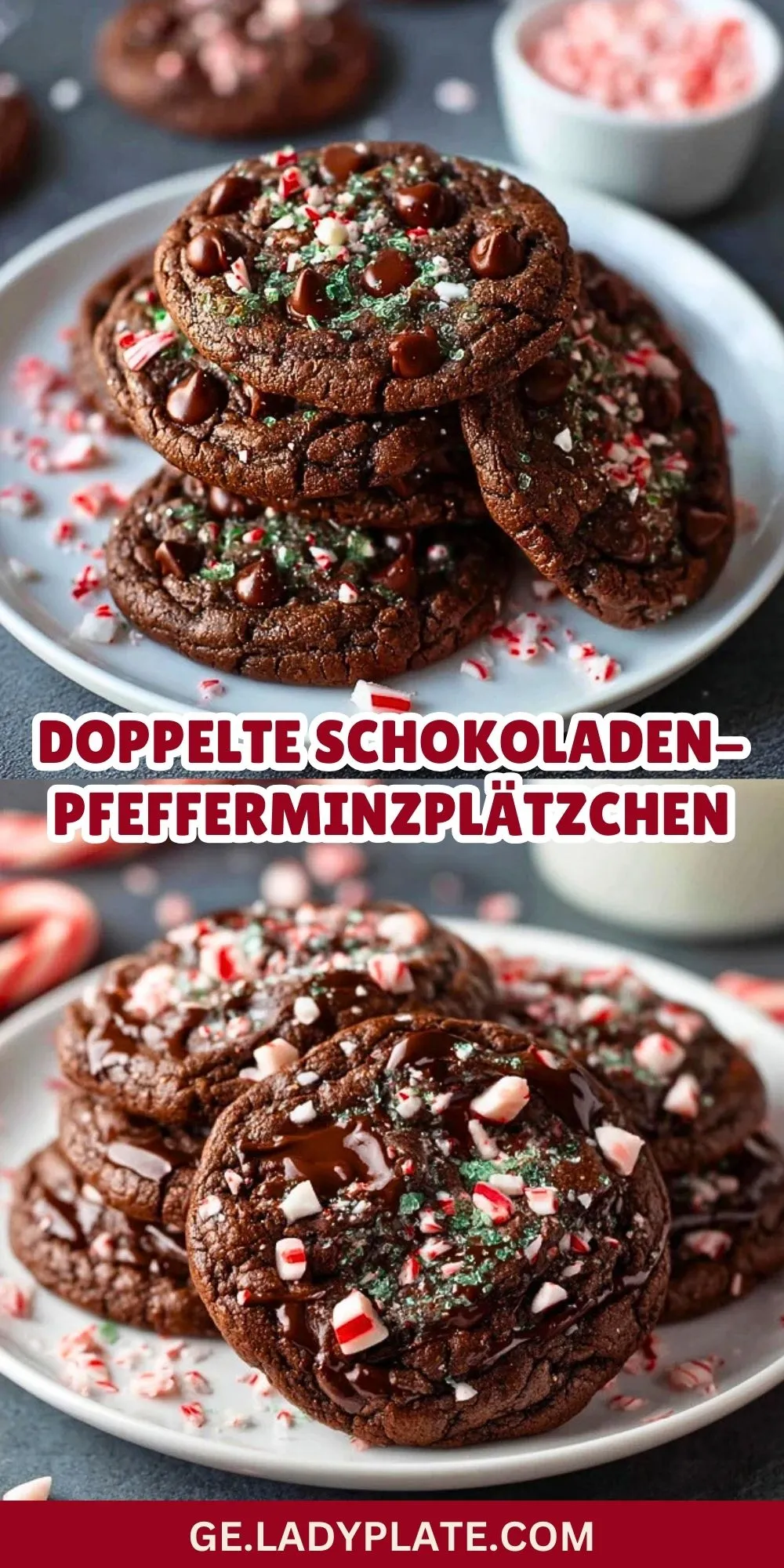 Diese Doppelte Schokoladen-Pfefferminzplätzchen sind ein echtes Highlight für die Winterzeit – innen weich, außen leicht knusprig, und mit einer Mischung aus intensiver Schokolade und erfrischendem Pfefferminz. Die Kombination von dunkler Kakaonote, zartschmelzenden Schokoladenstückchen und knackigen Pfefferminzbonbons macht sie unwiderstehlich. Perfekt für gemütliche Nachmittage mit einer Tasse Kakao oder als festliches Mitbringsel für jede Weihnachtsfeier!