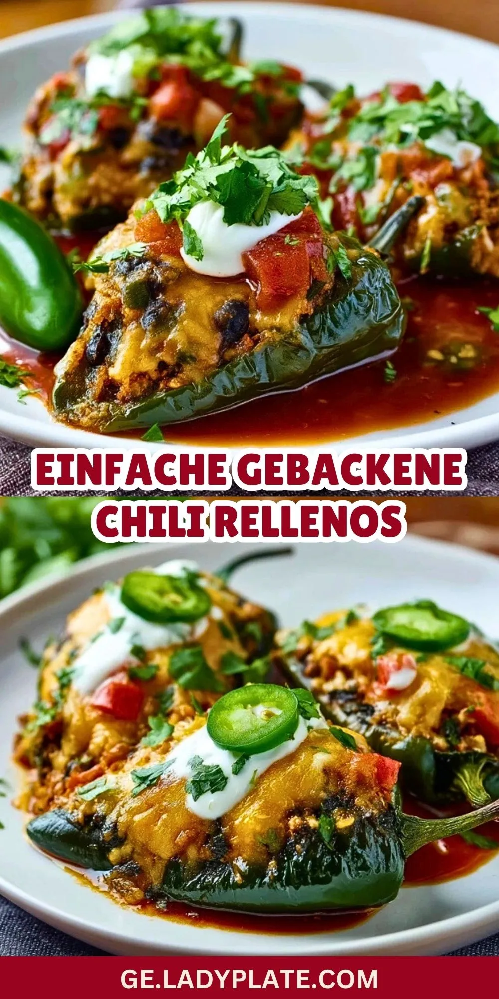 Ein Hauch von Mexiko in deiner Küche: Diese einfachen gebackenen Chili Rellenos sind ein echter Genuss für alle, die herzhafte und würzige Gerichte lieben! Statt traditionell frittiert werden die Paprika hier gefüllt und im Ofen gebacken – das macht sie nicht nur leichter, sondern auch besonders alltagstauglich. Saftige Paprika werden mit einer aromatischen Mischung aus schwarzen Bohnen, Reis, würzigem Hackfleisch (oder vegetarisch), Tomaten und geschmolzenem Käse gefüllt. Ein Klecks Sauerrahm und frische Kräuter on top sorgen für Frische und runden das Gericht perfekt ab.