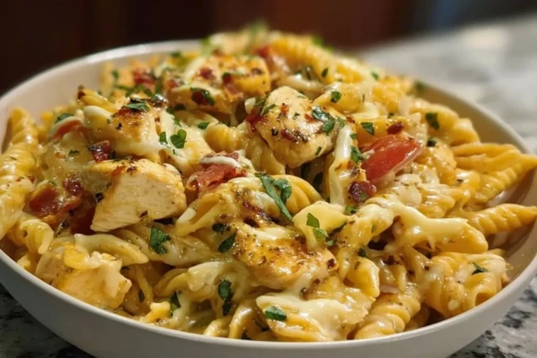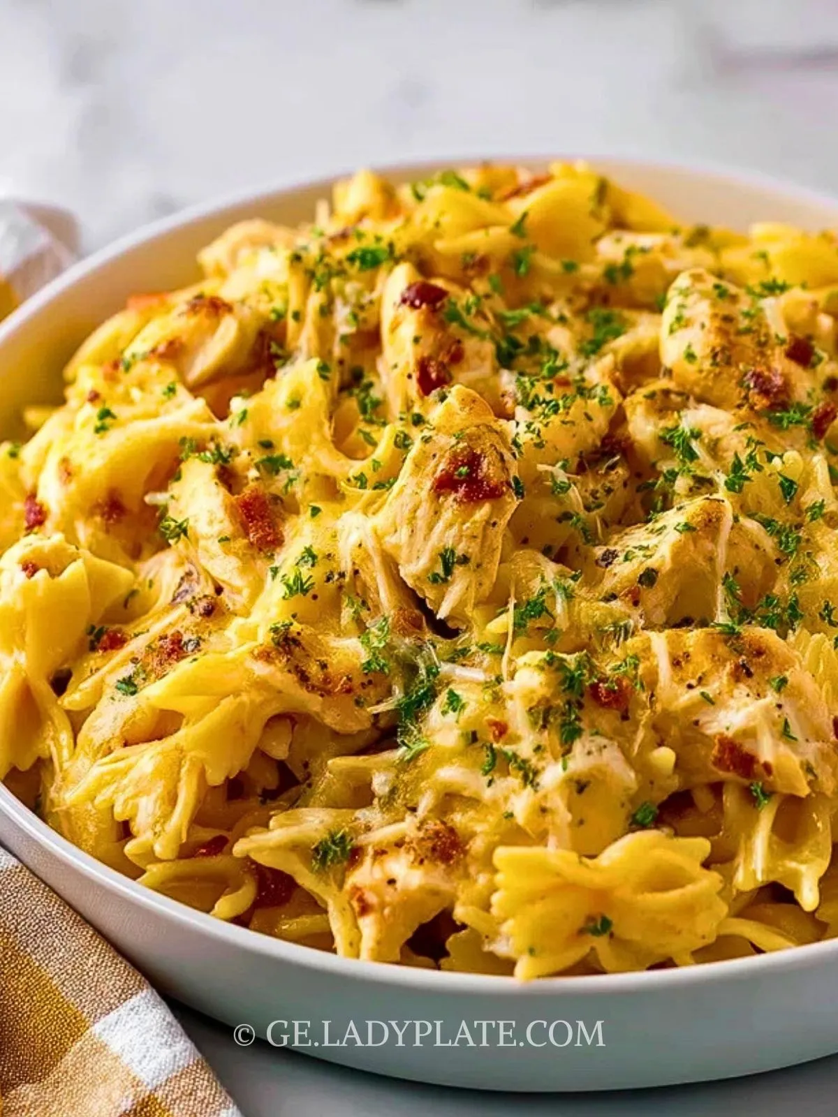 Die Hähnchen-Pasta schmeckt am besten frisch aus der Pfanne, direkt mit extra Käse und frischen Kräutern bestreut. Dazu passt ein knackiger grüner Salat oder etwas knuspriges Baguette. Reste können in einem luftdichten Behälter bis zu 2 Tage im Kühlschrank aufbewahrt werden. Zum Aufwärmen etwas Milch oder Sahne zugeben, damit die Pasta wieder schön cremig wird.