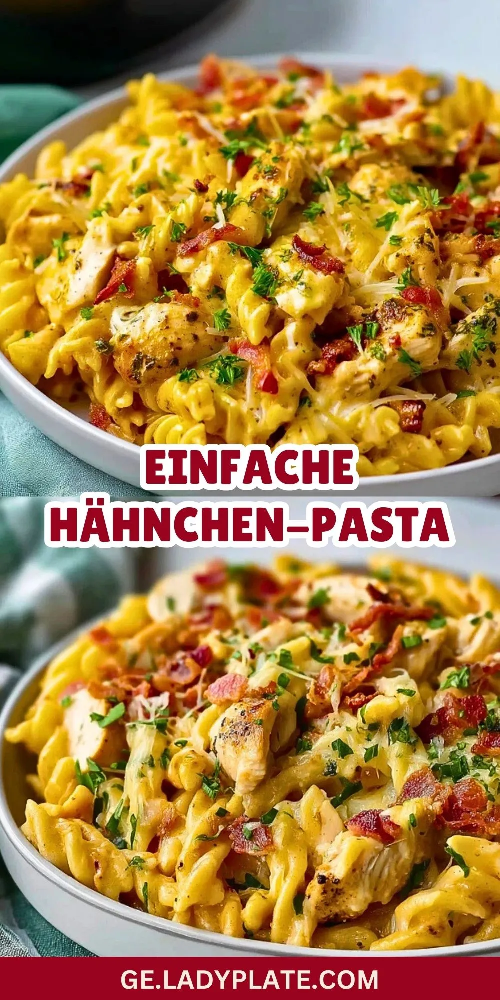 Saftiges Hähnchen, al dente gekochte Pasta, fruchtige Tomaten und würziger Käse – diese einfache Hähnchen-Pasta ist ein echtes Wohlfühlgericht für jeden Tag. Mit nur wenigen Zutaten entsteht in kurzer Zeit ein herzhaftes, cremiges Nudelgericht, das die ganze Familie lieben wird. Ob als schnelles Mittagessen, Abendessen nach Feierabend oder für Gäste: Diese Hähnchen-Pasta punktet immer mit ihrem Geschmack und der herrlich unkomplizierten Zubereitung.