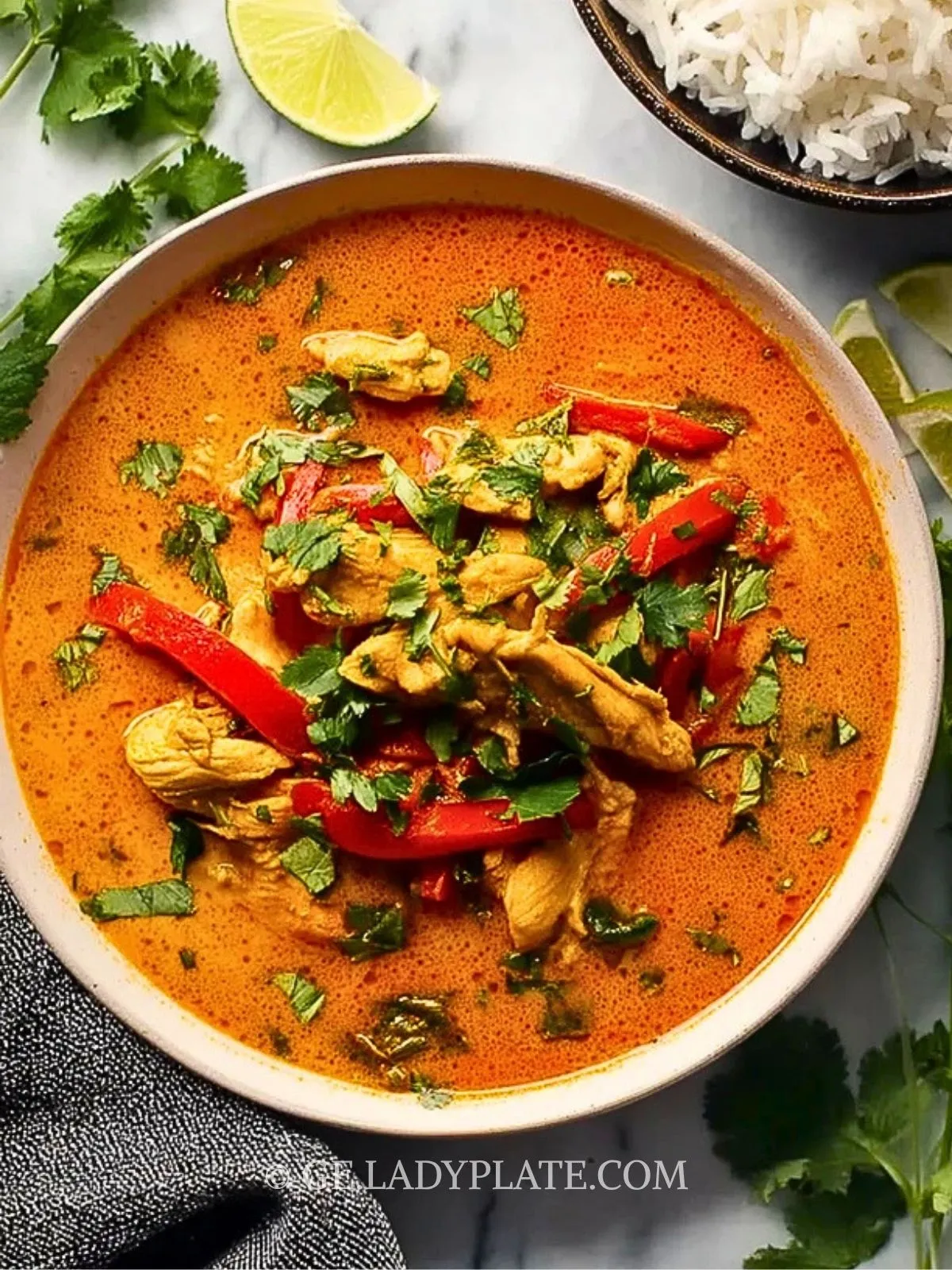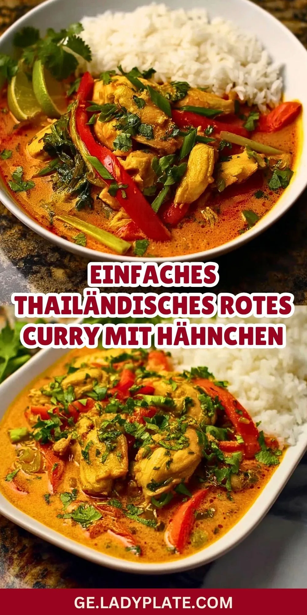 Keywords: thailändisches rotes Curry, Hähnchen Curry, Thai Curry, Curry mit Kokosmilch, einfaches Curry