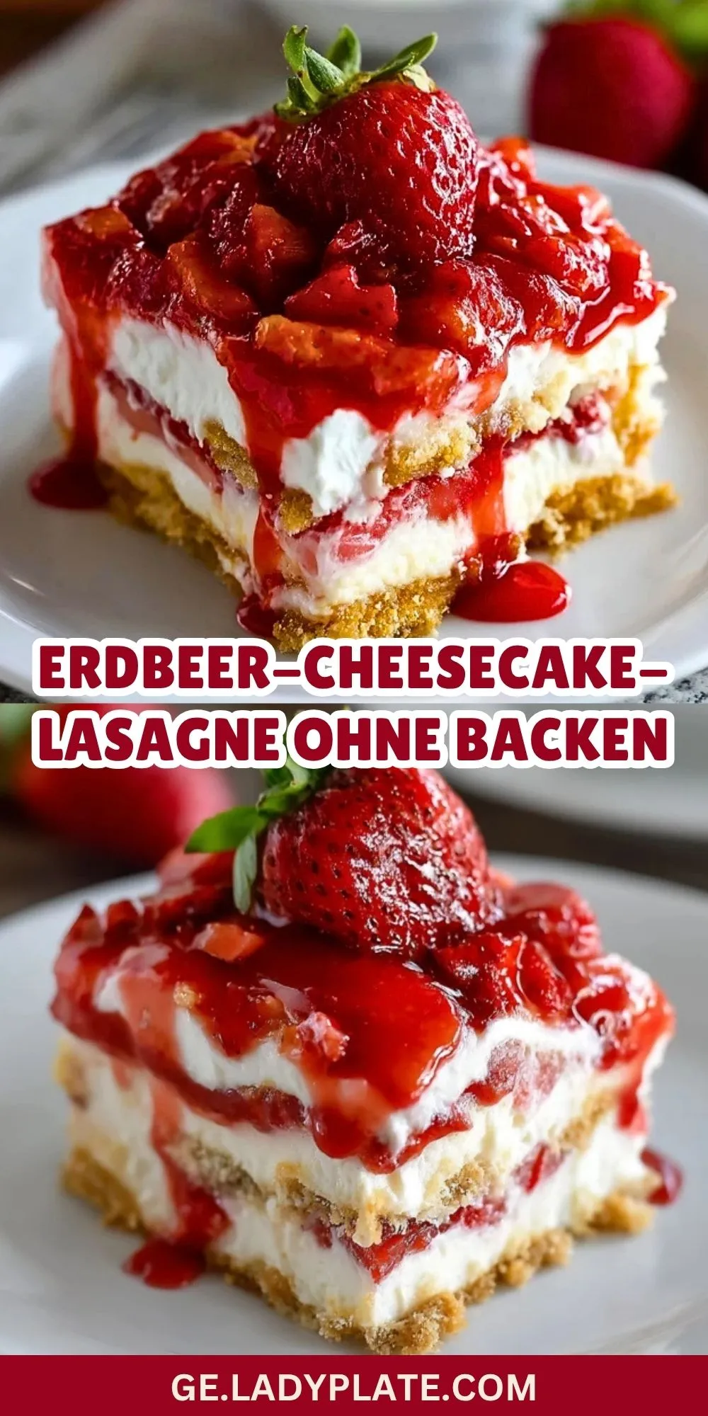 Keywords: Erdbeer-Cheesecake-Lasagne, ohne Backen, Erdbeer Dessert, Kühlschrankkuchen, No-Bake Dessert