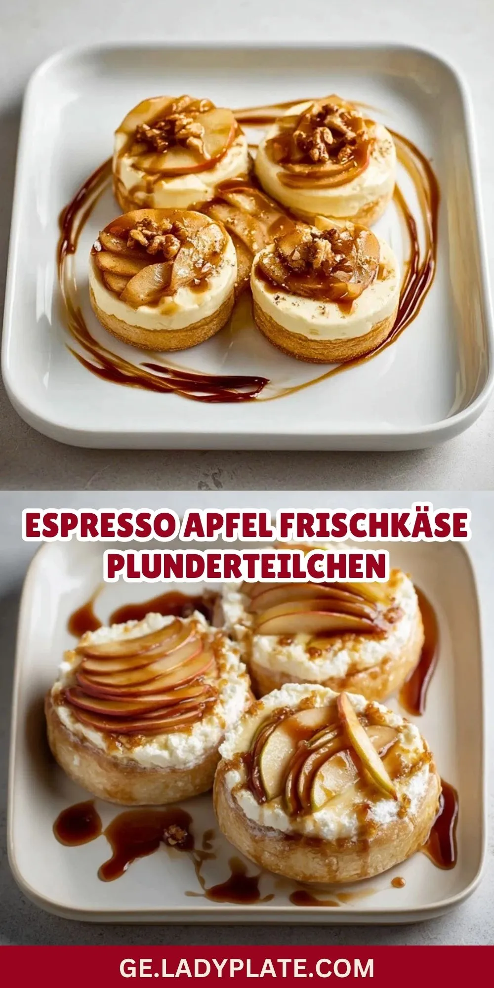 Ein Duft von frisch gebackenem Plunder, samtige Espresso-Noten und karamellisierte Äpfel – diese Espresso Apfel Frischkäse Plunderteilchen sind ein unwiderstehlicher Genuss für alle, die das Besondere lieben. Die feine Kombination aus knusprigem Blätterteig, einer frischen Frischkäse-Creme und fruchtigen Apfelscheiben vereint sich hier mit einem Hauch Espresso-Kick zu einem echten Highlight für Kaffeetafeln, Brunch oder als edles Dessert.