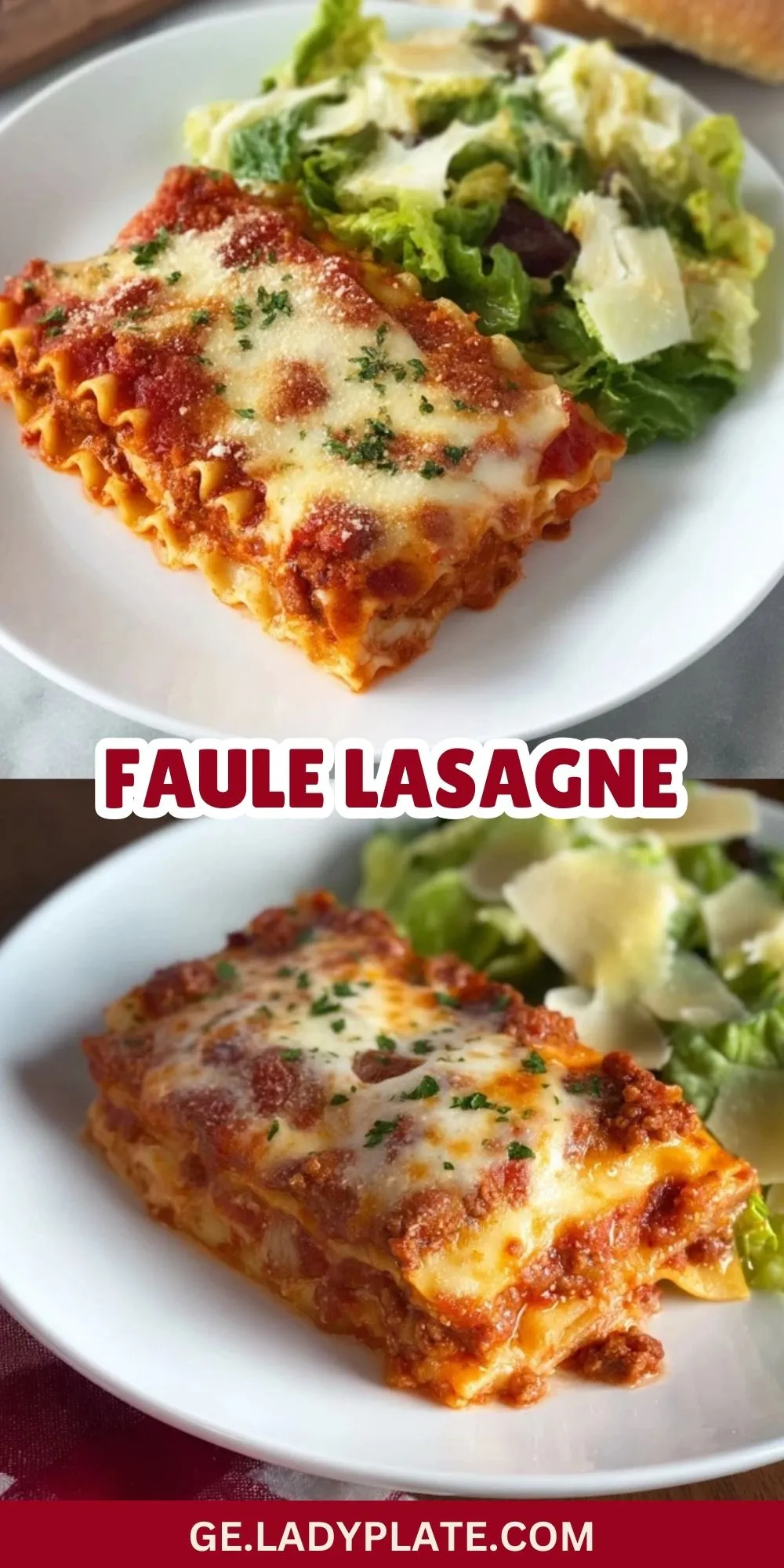 Faule Lasagne schmeckt frisch aus dem Ofen am allerbesten – die Kruste ist knusprig und der Käse zieht herrliche Fäden! Dazu passt ein knackiger grüner Salat und etwas Baguette. Reste kannst du problemlos im Kühlschrank aufbewahren. Luftdicht verschlossen hält die Lasagne 2–3 Tage und lässt sich wunderbar im Ofen oder in der Mikrowelle wieder aufwärmen.