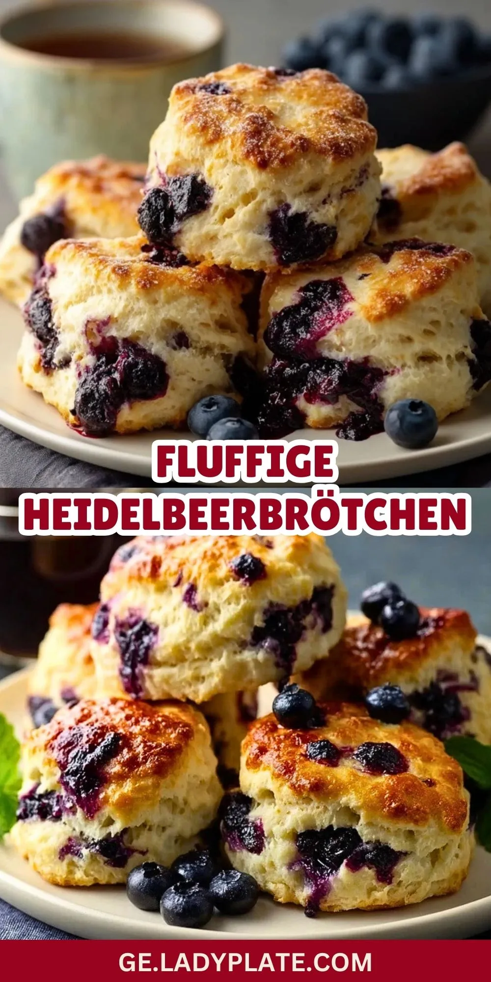 Fluffige Heidelbeerbrötchen sind kleine, buttrige Frühstücksbrötchen ohne Hefe, die dank kalter Butter und Buttermilch besonders weich und schichtig werden und durch saftige Heidelbeeren eine fruchtige, leicht süße Note bekommen – perfekt für gemütliche Frühstücke, Brunch oder als süßer Snack zwischendurch.