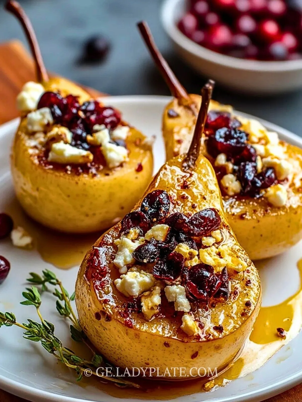 Diese gebackenen Birnen mit Feta, Honig und Cranberries sind ein schnell gemachtes, elegant wirkendes Dessert, das süße Früchte, salzig-cremigen Käse und fruchtige Säure perfekt verbindet.