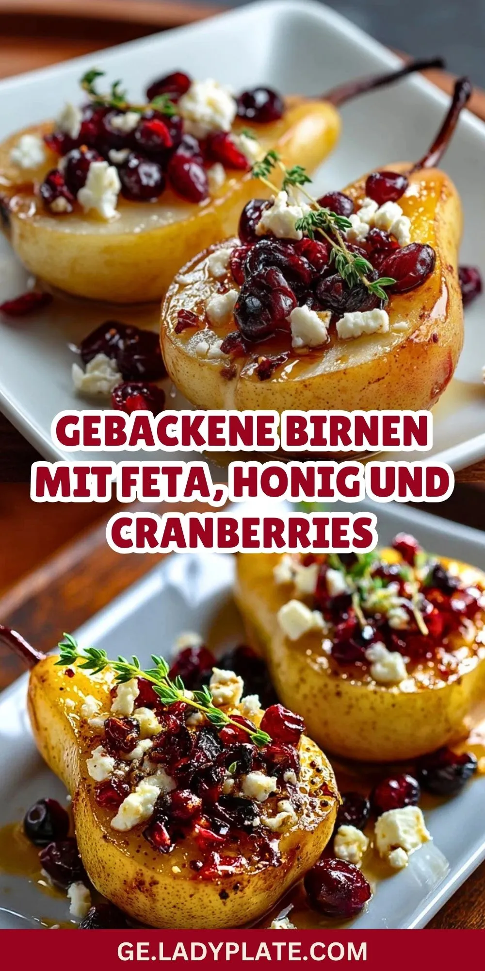 So bereitest du Gebackene Birnen mit Feta, Honig und Cranberries zu