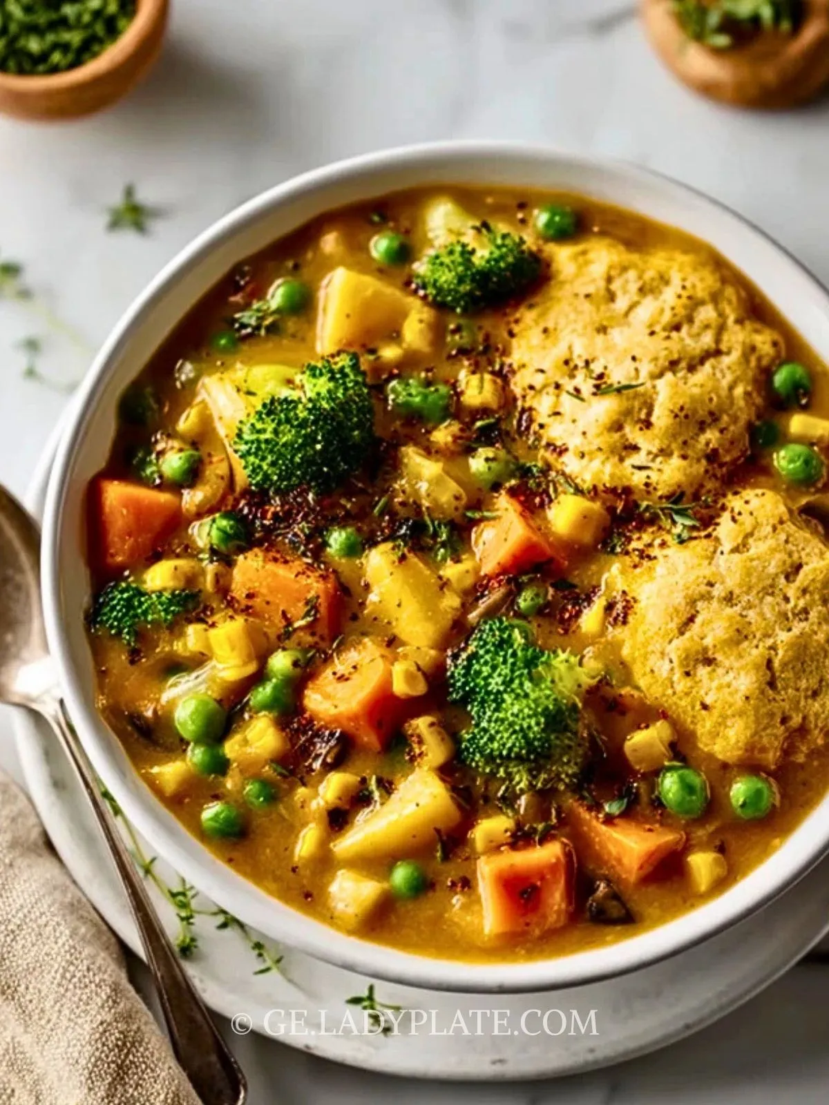 Ein herzhafter, cremiger Gemüseeintopf unter goldbrauner, knuspriger Teigkruste – perfekt für kalte Tage, einfach vorzubereiten und nach Belieben abzuwandeln. Ein vegetarisches Wohlfühlessen, das der ganzen Familie schmeckt!