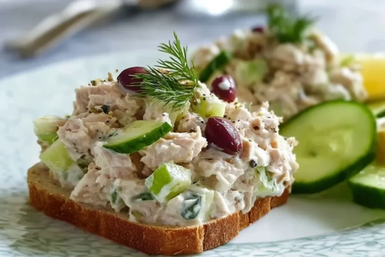 Ein cremiger, eiweißreicher Gesunder Quark-Thunfischsalat mit Gurke, Sellerie, roten Zwiebeln, Dill und Kidneybohnen. Perfekt als schneller Brotbelag, leichtes Mittagessen oder unkomplizierte Mahlzeit für warme Tage.