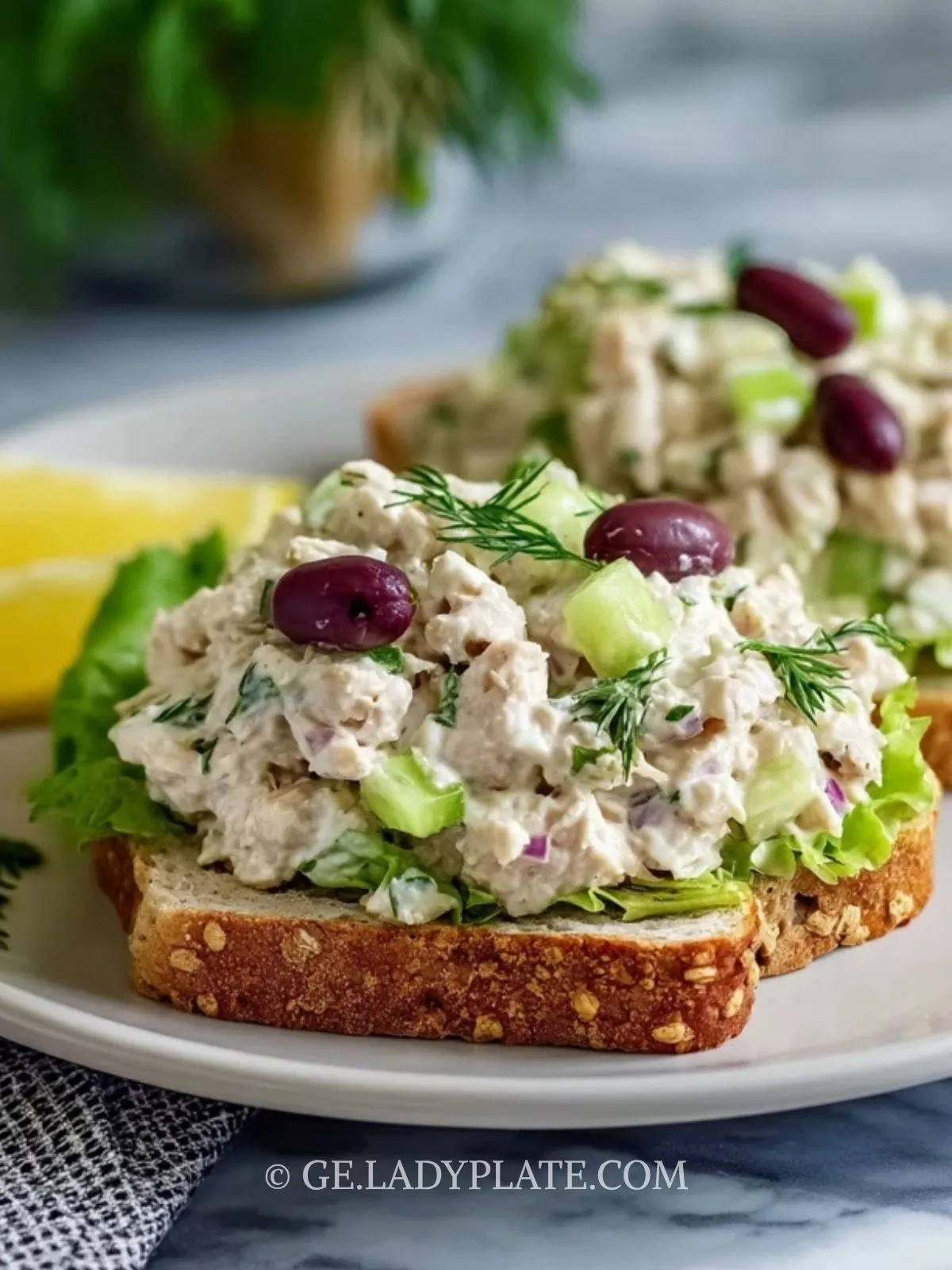 Serviere den Gesunden Quark-Thunfischsalat pur, auf frischem Brot, in Salatblättern, mit Crackern oder als Beilage zu Ofenkartoffeln. Nach Wunsch mit etwas zusätzlichem Dill garnieren.