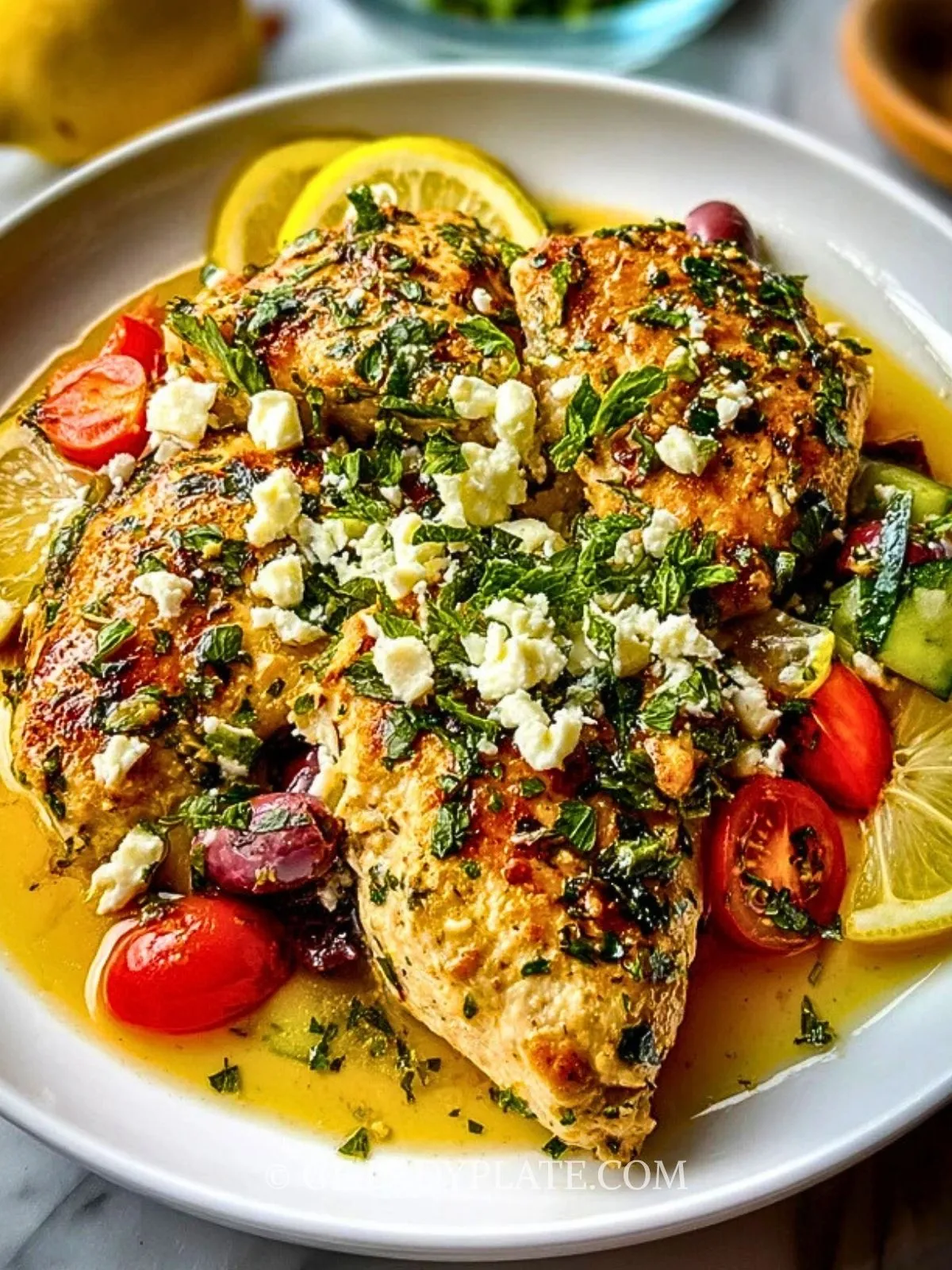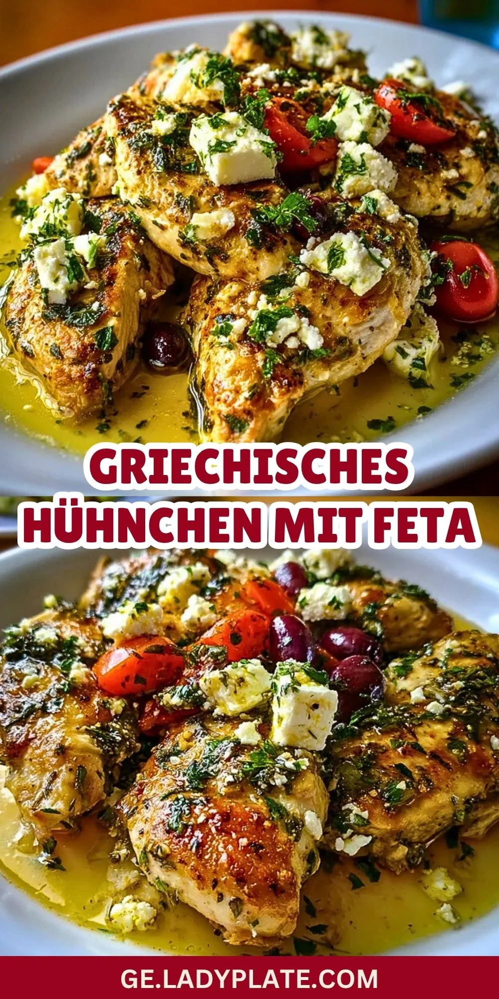 Keywords: Griechisches Hühnchen mit Feta, Hähnchen aus dem Ofen, mediterranes Hähnchen, Hähnchen mit Oliven und Feta