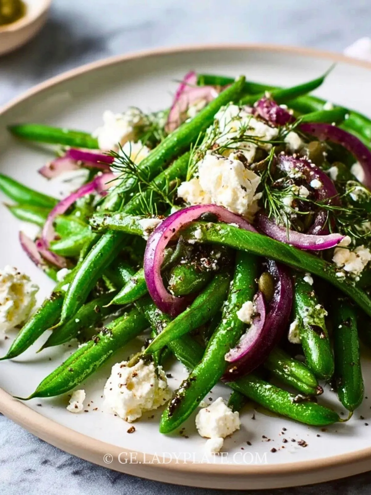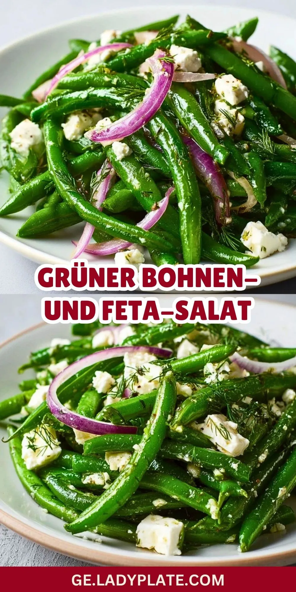 Ein frischer grüner Bohnen- und Feta-Salat ist das perfekte Sommergericht: knackige grüne Bohnen treffen auf würzigen Feta, rote Zwiebeln und aromatische Kräuter. Die Kombination aus zarten Bohnen und salzigem Käse sorgt für einen ausgewogenen Geschmack, der durch ein leichtes Zitronen-Olivenöl-Dressing unterstrichen wird.