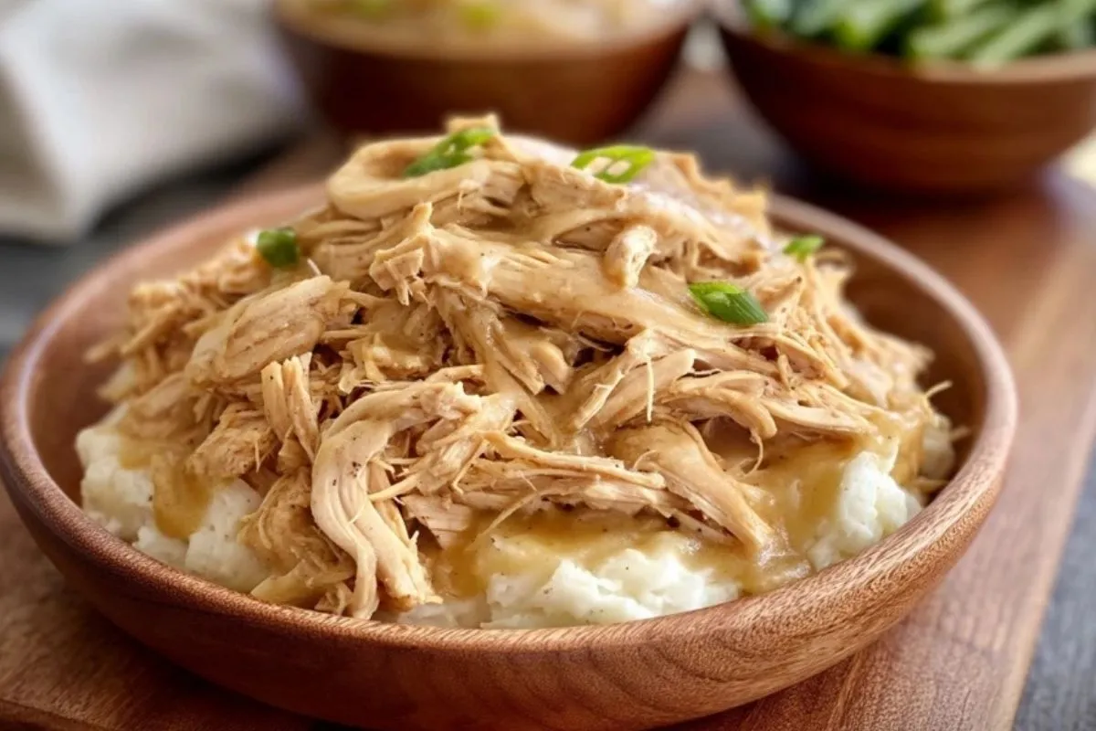 Langsam Gekochtes Zerrupftes Hähnchen mit Soße