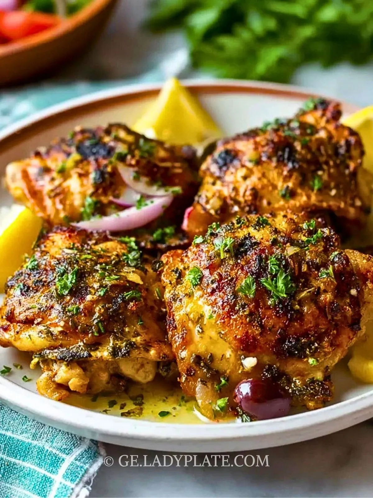 Saftige Hähnchenschenkel mit goldbrauner Haut, frischer Zitrone, Knoblauch und mediterranen Kräutern bringen sofort Urlaubsstimmung auf den Tisch. Dieses Gericht verbindet kräftige Röstaromen mit der typischen Frische der griechischen Küche und passt sowohl zu einem gemütlichen Familienessen als auch zu einem Essen mit Gästen.