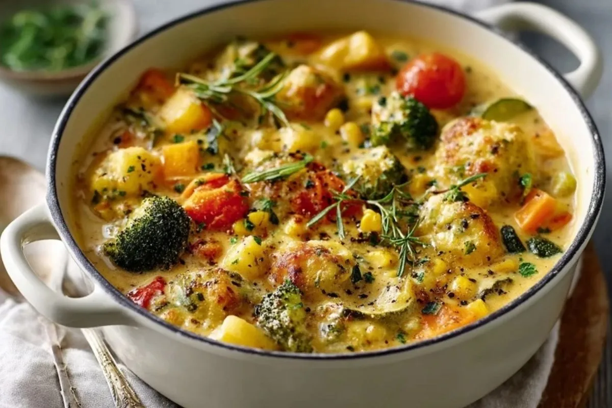 Gemüseeintopf mit Teigkruste