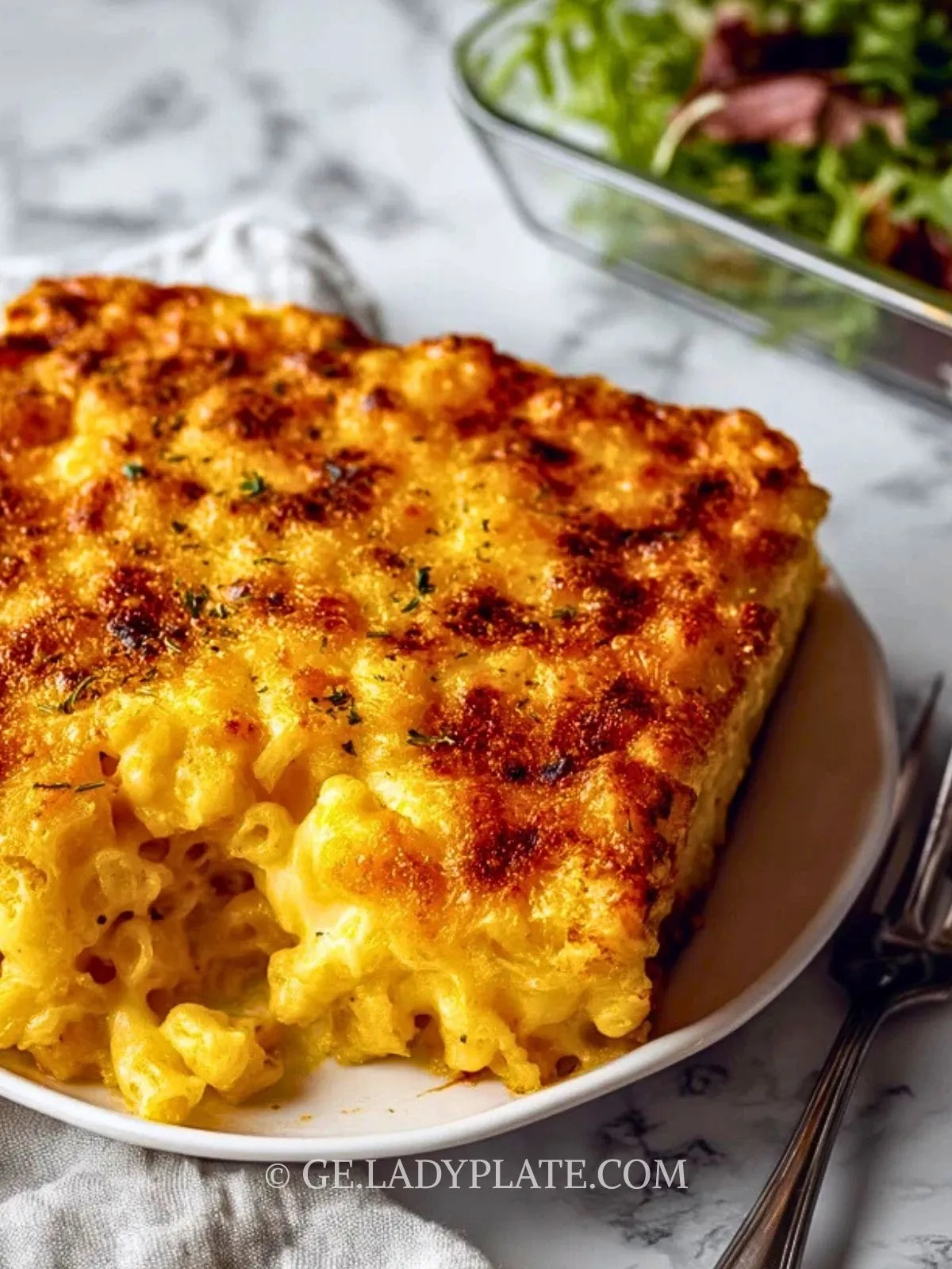 Mac and Cheese schmeckt am besten frisch aus dem Ofen, wenn die Käseschicht noch schön heiß und cremig ist. Als Beilage passt es zu gebratenem Gemüse oder als Hauptgericht mit einem frischen Salat. Reste lassen sich im Kühlschrank bis zu 2 Tage aufbewahren und können im Ofen oder in der Mikrowelle wieder erwärmt werden – ggf. etwas Milch untermischen, damit die Sauce nicht zu trocken wird.