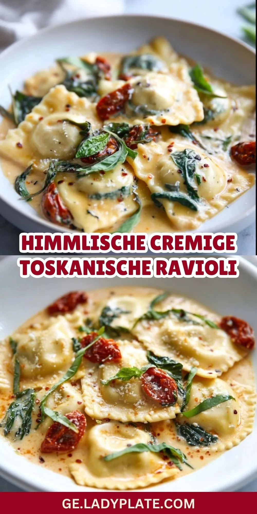 Diese himmlisch cremigen toskanischen Ravioli vereinen zart gefüllte Pasta mit einer reichhaltigen Sahnesauce, frischem Spinat, getrockneten Tomaten und feinen italienischen Kräutern. Perfekt für ein besonderes Abendessen oder wenn du dich nach Soulfood mit mediterranem Flair sehnst!