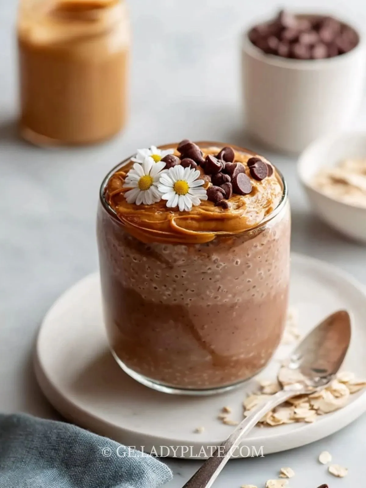 So bereitest du Hohe Protein Schokoladen-Erdnussbutter Übernacht-Haferflocken zu